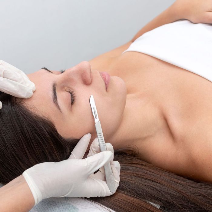 Dermaplaning is a minimally invasive cosmetic treatment that helps to reduce the appearance of acne scars or other skin imperfections by revealing newer, undamaged skin. Dermaplaning is a physical exfoliation method that involves gently scraping away the uppermost layers of your skin. This treatment can help minimize the appearance of acne scars, fine lines, wrinkles and dull skin. The procedure can reveal smoother, firmer, and healthier skin. Some customers get dermaplaning for hair removal, but remember this is only a temporary fix because your hair will grow back in this case. For permanent hair removal, we recommend Laser Hair Removal Treatment to remove your hair permanently.